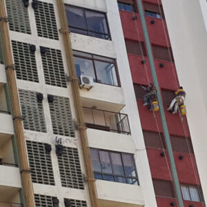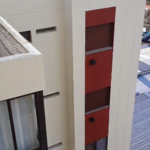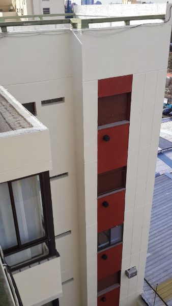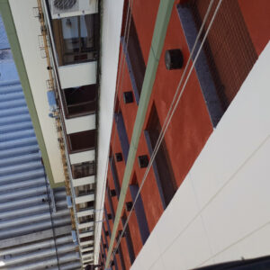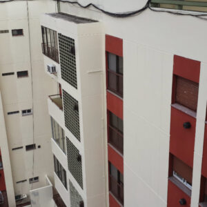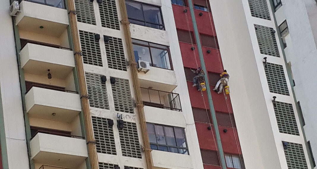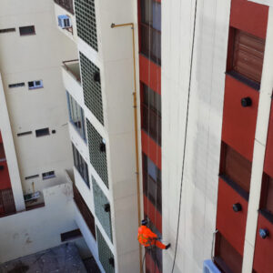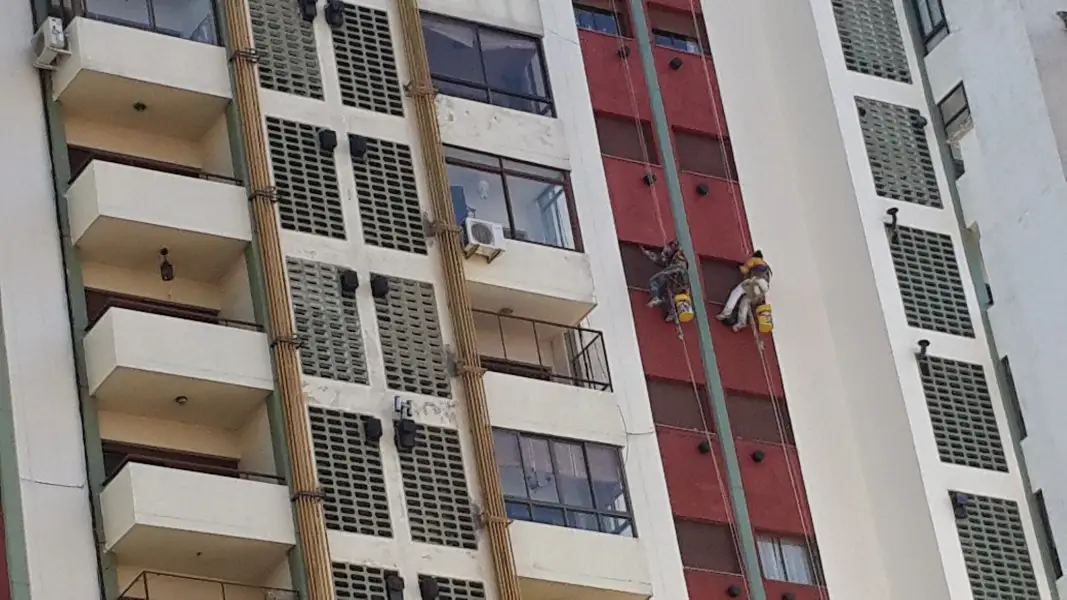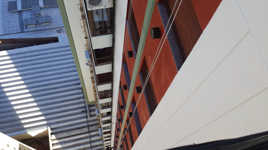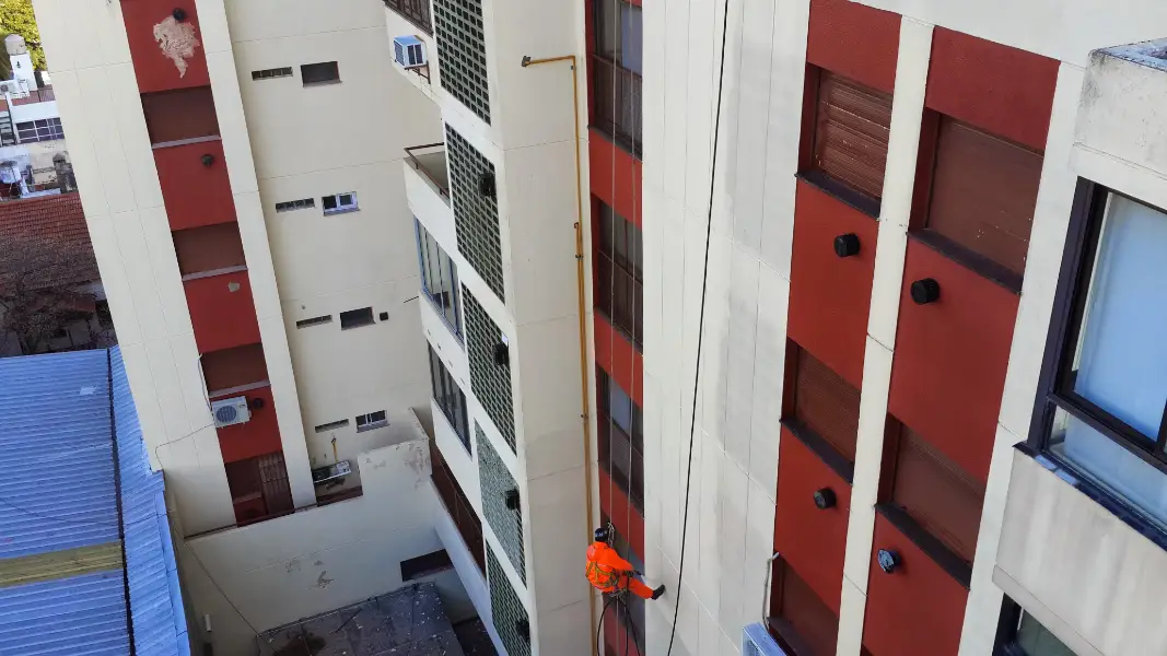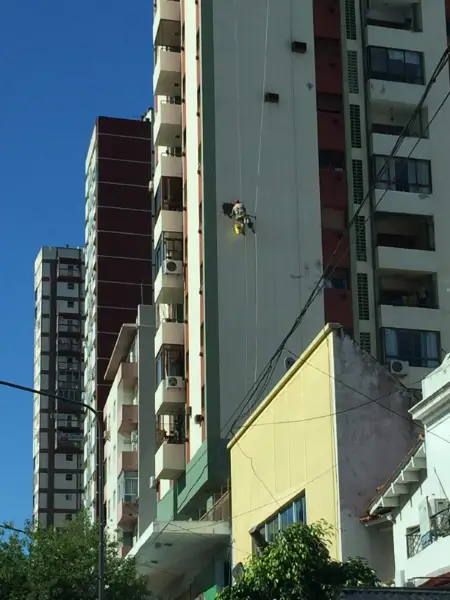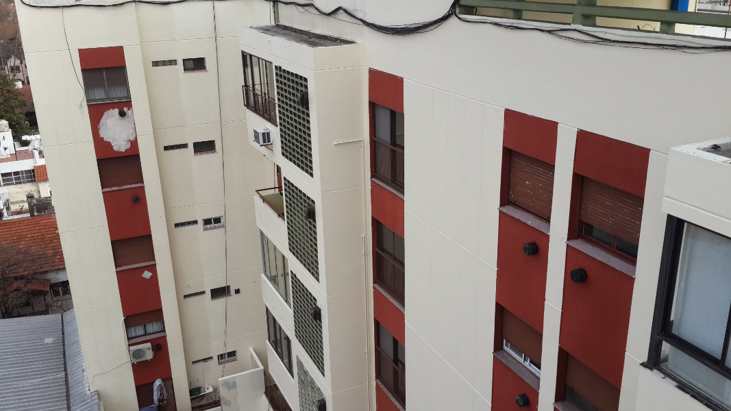 Aplicación de pintura total en todo el edificio para una renovación visual completa y profesional.