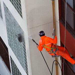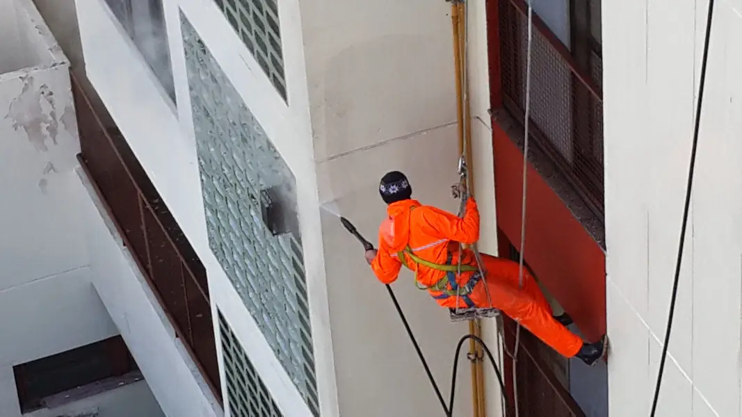 Limpieza profunda mediante hidrolavado para eliminar contaminantes y preparar la superficie de trabajo.