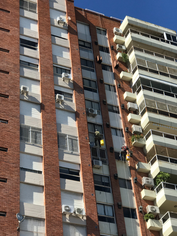 El edificio Santa Fe recibió un tratamiento completo de restauración de fachadas, priorizando la durabilidad de los materiales aplicados. El proceso eliminó el deterioro superficial y reforzó la protección contra la humedad en todo el perÃmetro.